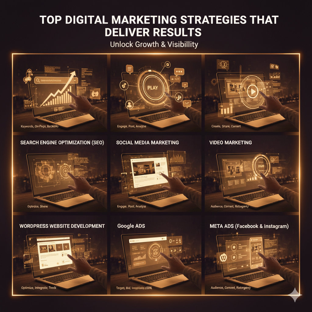 In today’s competitive online environment, businesses need a strategic approach to digital marketing to achieve growth, visibility, and measurable results. A well-planned digital marketing strategy combines multiple channels—such as SEO, social media marketing, video marketing, WordPress websites, Google Ads, and Meta advertising—to drive traffic, generate leads, and maximize return on investment (ROI). Understanding which strategies deliver results and how to implement them effectively is essential for business success.